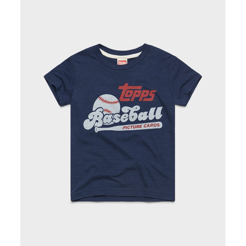 If its a real one, it must be Topps. The original baseball picture cards company is the stuff of your nostalgia-fueled fantasies, and now you can collect Junior a super-soft youth tee to rep the original wax packet. Topps is tops! Pay homage.