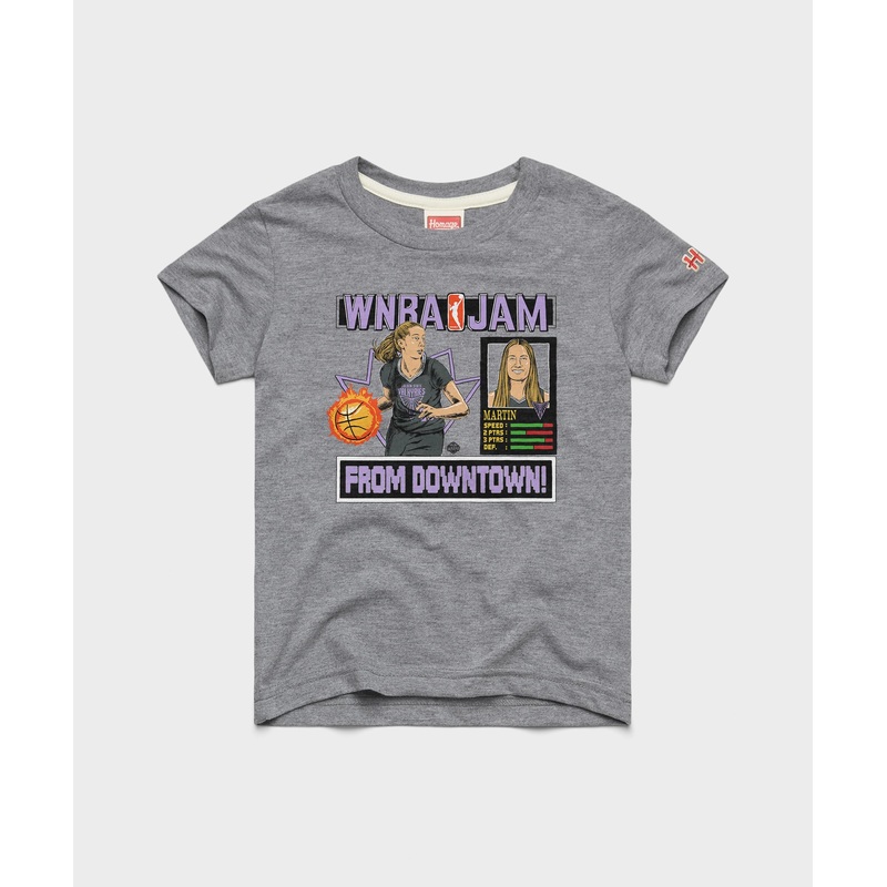 From downtown! Drop a quarter in the slot for our retro arcade-inspired WNBA Jam homage to one of the best in the game, Golden State Valkyries superstar Kate Martin. Boomshakalaka!